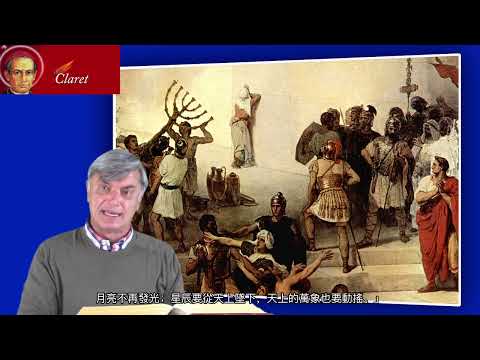 要明白人子的末世圖像,我們必須參考《達尼爾先知書》。在第七章,他用猛獸的圖像來描述相繼更迭的四個帝國。第一個是獅子(你在背景中可以看到它;在巴比倫的Ishtar門前的獅子);它代表巴比倫帝國,巴比倫王拿步高摧毀了耶路撒冷城,並且,只要帝國有實力勝過其他民族,它就會一直存留。但在某一時刻,一隻熊戰勝了獅子;它是瑪代人( Medes)的帝國;然後瑪代人也被另一隻獸——豹子所打敗,這只豹子代表的是波斯帝國,它敏捷而迅速地擴張至整個古代世界,遠達希臘。最後是第四只獸,沒有說明其名字,但它是凶猛的。他說它是貪婪的、殘酷的,以至于無法描述;甚至無法找到一個對比來說明這第四只獸是什麽動物。這就是亞歷山大大帝。在他之後,是統治叙利亞和巴勒斯坦的塞琉古(Seleucids)。